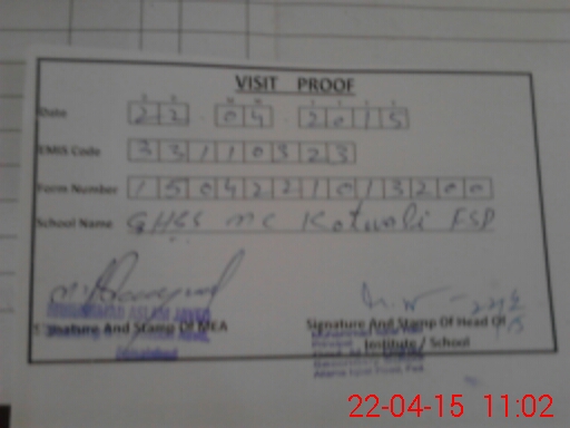 | Attendance Register | Head Teacher | MEA with School | Visit Proof |