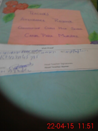 | Attendance Register | Head Teacher | MEA with School | Visit Proof |