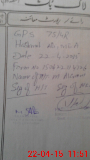 | Monitoring Date: 22-04-2015 | Start Time: 22-04-2015 11:24 AM | End Time: 22-04-2015 11:52 AM | Name of MEA: Ha**** Al**** BN**** 06 | |