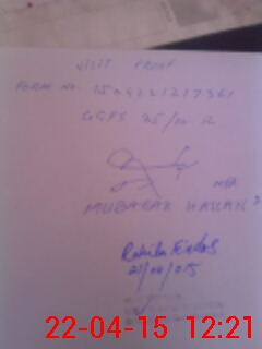 | Monitoring Date: 22-04-2015 | Start Time: 22-04-2015 11:55 AM | End Time: 22-04-2015 12:22 PM | Name of MEA: Z-**** Ha**** | |
