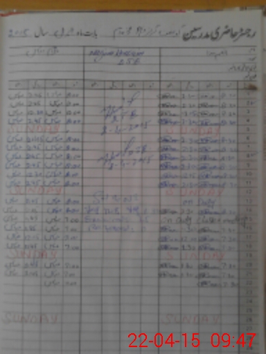 | CNIC | Full Name | Designation | R/C | Absence During Last Calender Month |