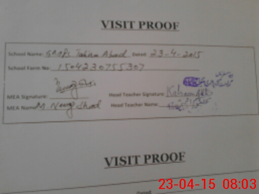 | EMIS Code: 33220704 | Name of School: GMPS TAHIR ABAD | |||