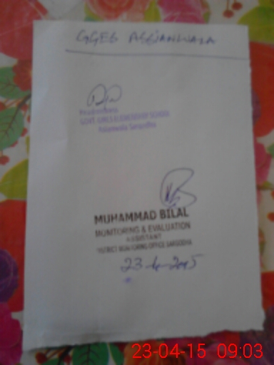 | District: SARGODHA | Tehsil: SARGODHA | Markaz: ASIAN WALA - FEMALE | Level: Middle | |