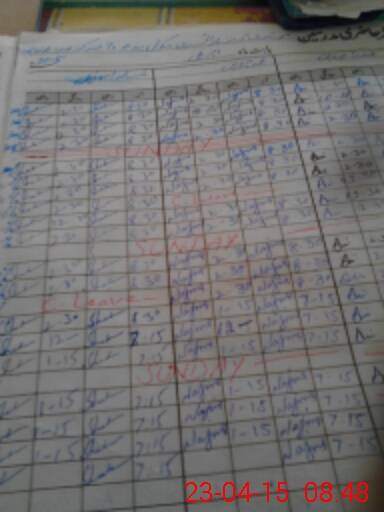 | CNIC | Full Name | Designation | R/C | Absence During Last Calender Month |