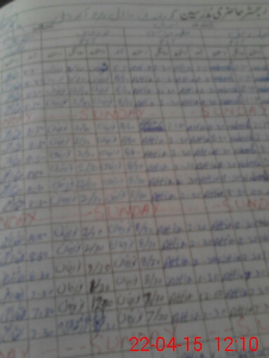 | CNIC | Full Name | Designation | R/C | Absence During Last Calender Month |
