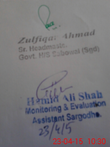 | District: SARGODHA | Tehsil: SHAHPUR | Markaz: SECONDARY-WING | Level: High | |
