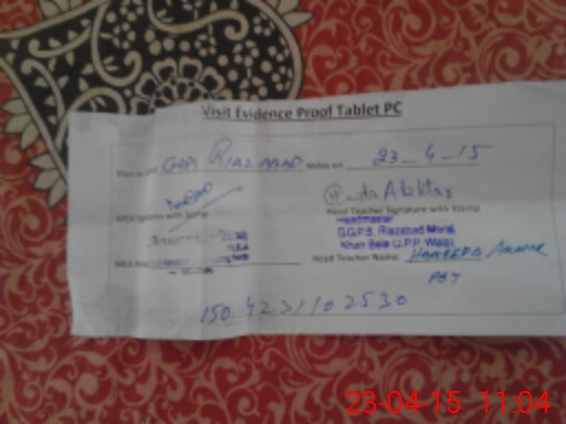 | Attendance Register | Head Teacher | MEA with School | Visit Proof |
