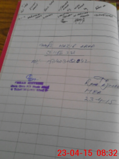 | Monitoring Date: 23-04-2015 | Start Time: 23-04-2015 08:13 AM | End Time: 23-04-2015 08:33 AM | Name of MEA: Ra**** Mu**** Aj**** BN**** 22 | |