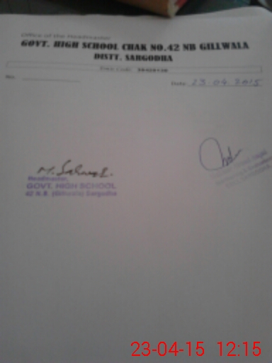 | EMIS Code: 38420130 | Name of School: GHS CHAK NO.42 NB GILL WALA | |||