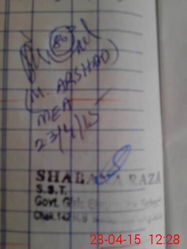 | Remarks (Use Separate Page if Required): Sese Atifa Zafar peon Asmatullah Mali Zafar Iqbal not present in school HM says sese is in rescue training peon in court Mali in DDEO office no such letter order held in school | |||||