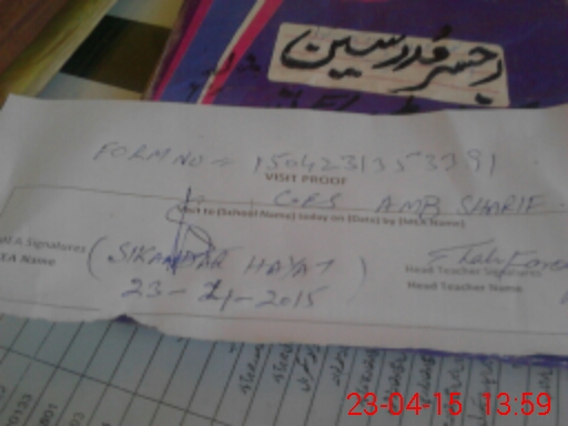 | Attendance Register | Head Teacher | MEA with School | Visit Proof |
