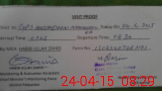 | School Visited by School Health & Nutrition Supervisor (No. of Visits) | 1 | Name1: | UMET DARAZ | Name2: | |