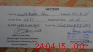 | School Visited by School Health & Nutrition Supervisor (No. of Visits) | Name1: | UMER DARAZ | Name2: | ||
