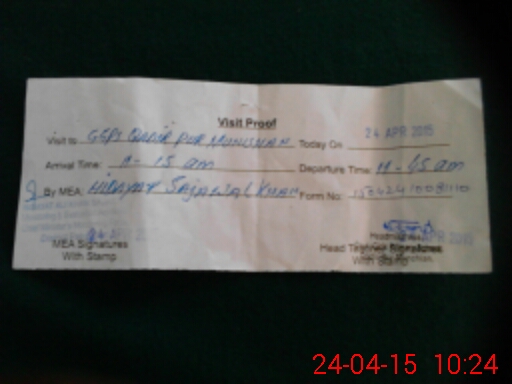 | Monitoring Date: 24-04-2015 | Start Time: 24-04-2015 10:08 AM | End Time: 24-04-2015 10:26 AM | Name of MEA: Hi**** Al**** Kh**** (R**** | |