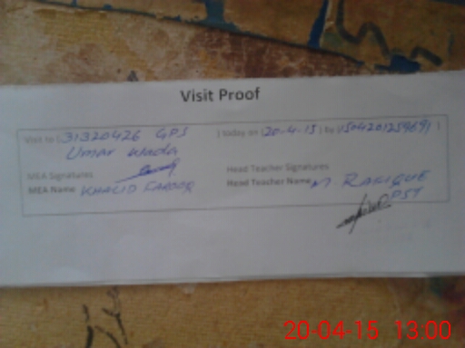 | Attendance Register | Head Teacher | MEA with School | Visit Proof |