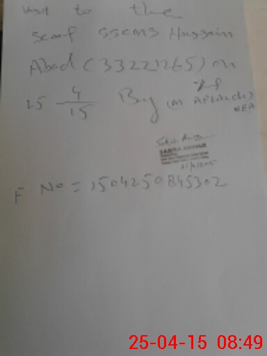 | Monitoring Date: 25-04-2015 | Start Time: 25-04-2015 07:56 AM | End Time: 25-04-2015 08:53 AM | Name of MEA: J-**** CH**** MO**** AF**** | |
