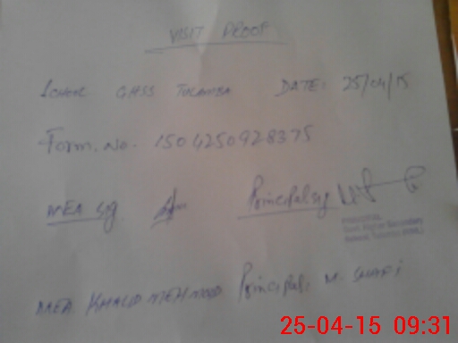 | Attendance Register | Head Teacher | MEA with School | Visit Proof |