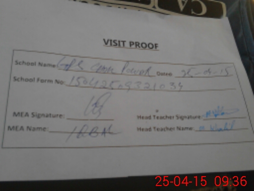 | Attendance Register | Head Teacher | MEA with School | Visit Proof |