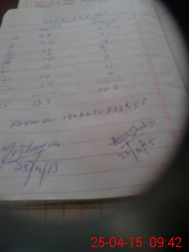 | Monitoring Date: 25-04-2015 | Start Time: 25-04-2015 09:08 AM | End Time: 25-04-2015 09:48 AM | Name of MEA: M.Ma**** Ya**** | |