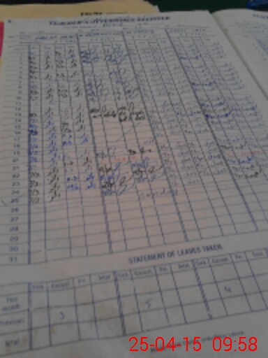 | 38**** | MU**** KH**** | JUNIOR CLERK | Regular | 1 | 7 | 0 | 0 | 0 | 0 | 0 | 0 | 1 | Casual |