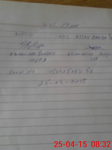 | School Visited by School Health & Nutrition Supervisor (No. of Visits) | Name1: | SIRFRAZ | Name2: | ||