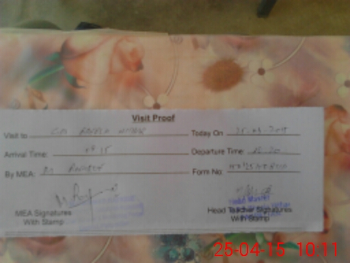 | School Visited by School Health & Nutrition Supervisor (No. of Visits) | 1 | Name1: | M SHOAIB ABUZER | Name2: | |