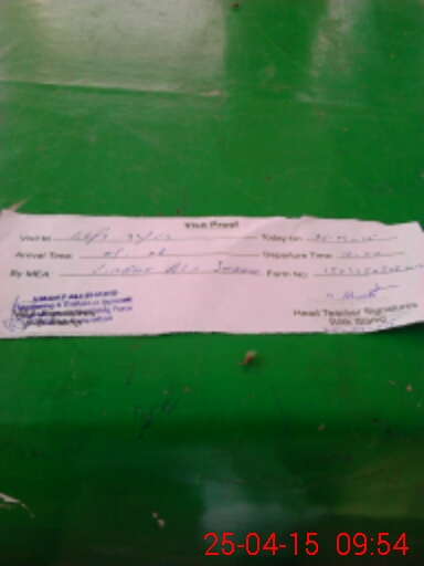 | Monitoring Date: 25-04-2015 | Start Time: 25-04-2015 09:08 AM | End Time: 25-04-2015 09:54 AM | Name of MEA: Li**** Al**** Sh**** (R**** | |