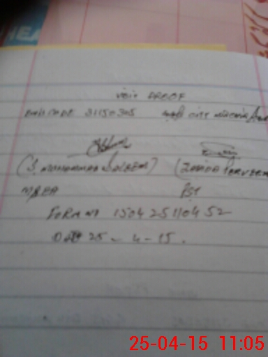 | Monitoring Date: 25-04-2015 | Start Time: 25-04-2015 10:43 AM | End Time: 25-04-2015 11:07 AM | Name of MEA: Mu**** Sa**** BN**** 33 | |