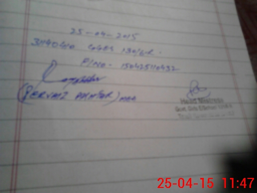| Monitoring Date: 25-04-2015 | Start Time: 25-04-2015 11:04 AM | End Time: 25-04-2015 11:47 AM | Name of MEA: Pe**** Ak**** BN**** 12 | |