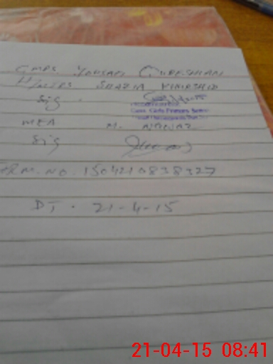 | Monitoring Date: 21-04-2015 | Start Time: 21-04-2015 08:15 AM | End Time: 21-04-2015 08:44 AM | Name of MEA: S-**** MO**** NA**** AK**** (R**** | |