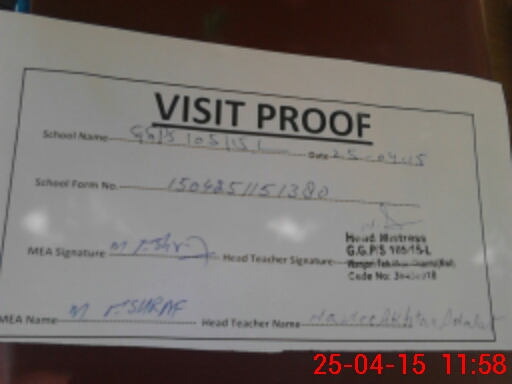 | Attendance Register | Head Teacher | MEA with School | Visit Proof |