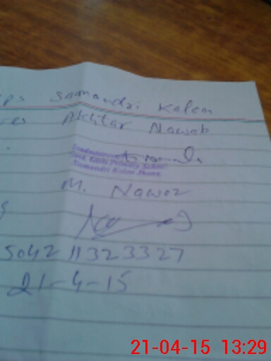 | Name: If**** Ba**** Designation: (School Headmaster's/Headmistress's) PST Phone/Cell Number: 03**** |