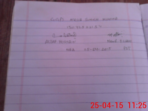 | Monitoring Date: 25-04-2015 | Start Time: 25-04-2015 10:25 AM | End Time: 25-04-2015 11:25 AM | Name of MEA: Al**** Hu**** BN**** | |