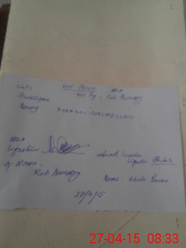 | Monitoring Date: 27-04-2015 | Start Time: 27-04-2015 08:01 AM | End Time: 27-04-2015 08:37 AM | Name of MEA: Ra**** Na**** (R**** | |