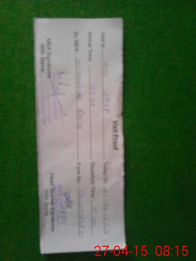 | Monitoring Date: 27-04-2015 | Start Time: 27-04-2015 08:08 AM | End Time: 27-04-2015 08:56 AM | Name of MEA: Mu**** Ra**** | |