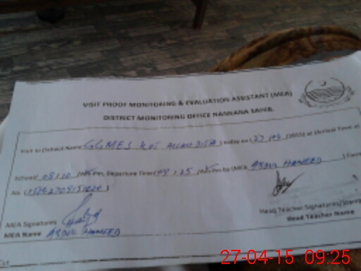 | EMIS Code: 35610077 | Name of School: GGES KOT ALLAH DITTA | |||