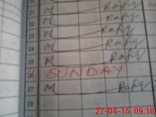 | Monitoring Date: 27-04-2015 | Start Time: 27-04-2015 08:52 AM | End Time: 27-04-2015 09:23 AM | Name of MEA: Z.**** M.Is**** | |