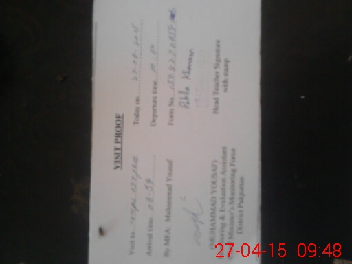 | School Visited by School Health & Nutrition Supervisor (No. of Visits) | 1 | Name1: | Abdul Rauf Khan | Name2: | |
