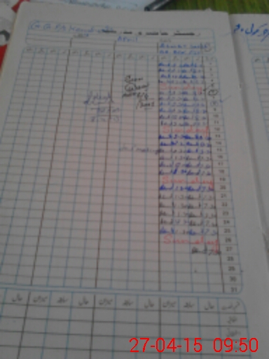 | Monitoring Date: 27-04-2015 | Start Time: 27-04-2015 09:29 AM | End Time: 27-04-2015 09:59 AM | Name of MEA: Kh**** Hu**** | |