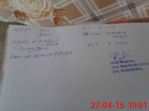 | Name: Fe**** Ra**** Designation: (School Headmaster's/Headmistress's) SST (G) Phone/Cell Number: 03**** |