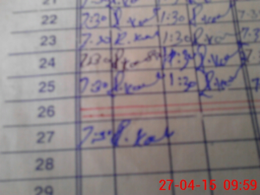 | Monitoring Date: 27-04-2015 | Start Time: 27-04-2015 09:43 AM | End Time: 27-04-2015 10:02 AM | Name of MEA: Z.**** M.Is**** | |