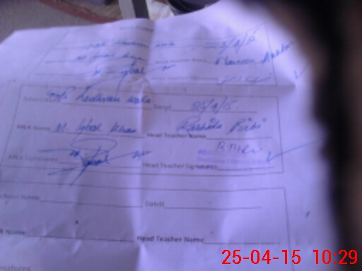 | School Visited by School Health & Nutrition Supervisor (No. of Visits) | 1 | Name1: | Mehjabeen Anwar | Name2: | |