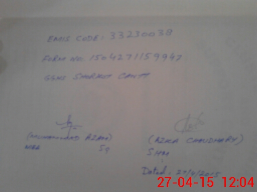 | EMIS Code: 33230038 | Name of School: GGHS SHORKOT CANTT | |||