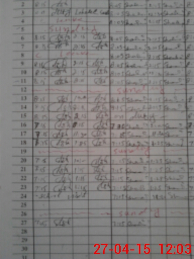 | Monitoring Date: 27-04-2015 | Start Time: 27-04-2015 09:50 AM | End Time: 27-04-2015 12:07 PM | Name of MEA: S-**** MO**** AZ**** (R**** 12**** | |