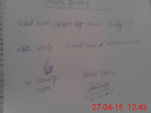 | School Visited by School Health & Nutrition Supervisor (No. of Visits) | 1 | Name1: | Javed Akhtar | Name2: | |