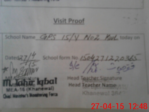 | EMIS Code: 36420198 | Name of School: GPS 15/V NO.2 KHANEWAL | |||