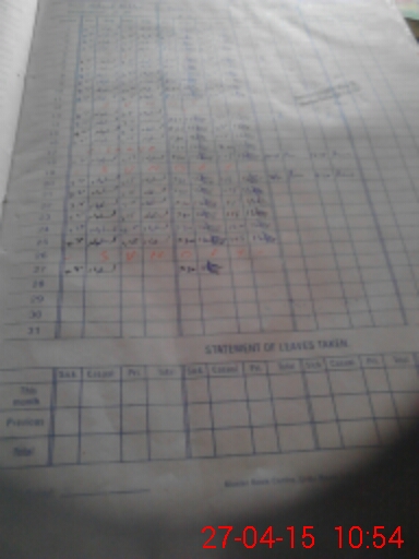 | CNIC | Full Name | Designation | R/C | Absence During Last Calender Month |