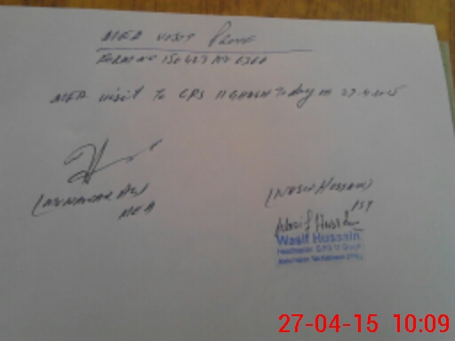 | Monitoring Date: 27-04-2015 | Start Time: 27-04-2015 09:47 AM | End Time: 27-04-2015 10:11 AM | Name of MEA: Mu**** Al**** ex**** | |