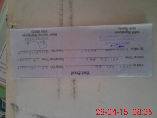 | Monitoring Date: 28-04-2015 | Start Time: 28-04-2015 07:31 AM | End Time: 28-04-2015 08:35 AM | Name of MEA: Kh**** Ha**** (R**** | |