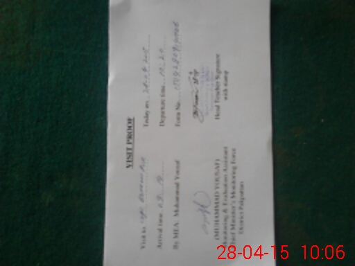 | Attendance Register | Head Teacher | MEA with School | Visit Proof |